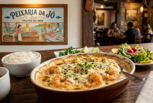 - Camarão Suculento: Não deixe o camarão fritar muito tempo antes de ir ao forno. Como ele ainda vai assar com o molho, o segredo é apenas dar um susto na frigideira para selar o sabor. 🍤🔥